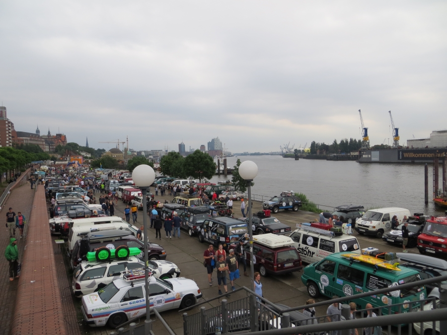 Um 10:00 Uhr füllte sich so langsam der St.Pauli-Fischmarkt, es kamen Teams von „ganz normal“ bis zu völlig kuriosen Fahrzeugen an. Auch hier wieder ein reger Austausch, teilweise kannte man sich schon aus den sozialen Netzwerken, jetzt in echt.