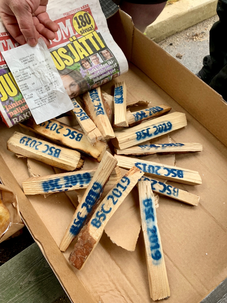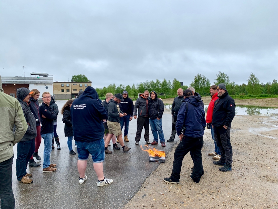 Leider hat es praktisch den ganzen Tag geregnet, so haben wir entschieden den Grenzübergang Raja Joseppi einfach mal anzufahren. In Ivalo haben wir noch unsere Tagesaufgabe erledigt, die darin bestand, mit möglicht vielen Teams ein Feuer aus den mitgebrachten Holzstücken (timber block) zu entfachen. Es waren immerhin 16 Hölzer, somit 16 von 20 möglichen Punkten.